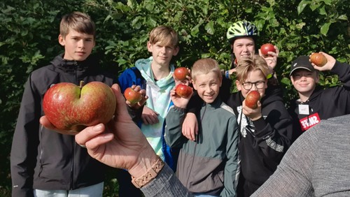 Vi skal presse dem til saft, og måske lave andre lækkerier, som vi skal sælge i morgen ved Æblehøstgudstjenesten. Pengene kan kirken dele ud til mennesker der har behov ved juletid.