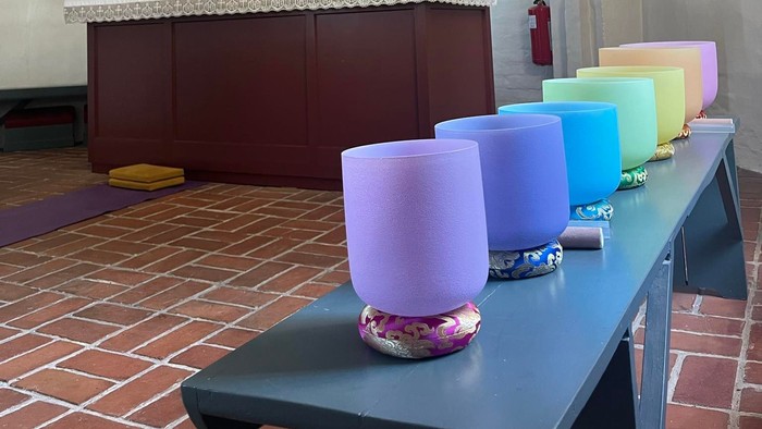 Præsten leder bønnen og bevægelserne ledsages af levende musik eller klangmeditation.